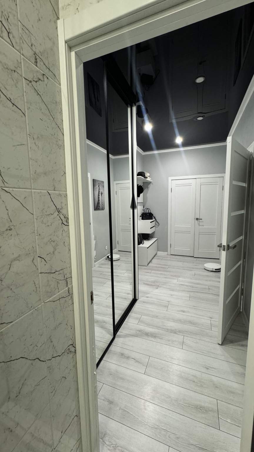 Продуманный коридор: Большая прихожая с зеркальным шкафом-купе — встречает гостей функциональностью и стилем.